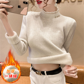 秋冬木耳边针织衫女2020加厚时尚洋气修身毛衣配大...