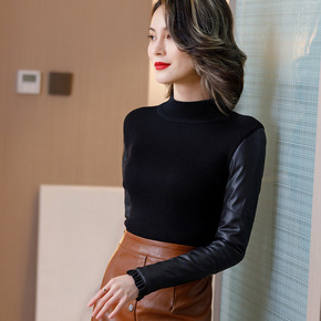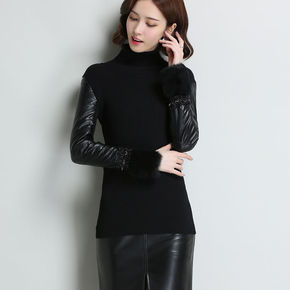 真兔毛皮袖打底衫女冬修身2021新款配皮草的内搭厚...