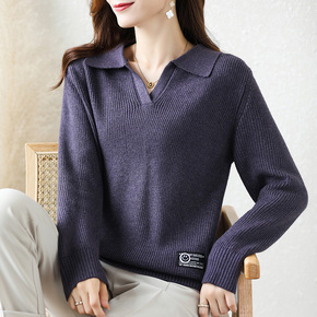 毛衣女宽松外穿秋冬装2021新款针织半开翻领打底衫...