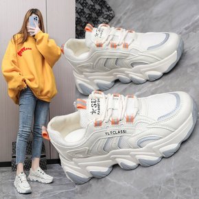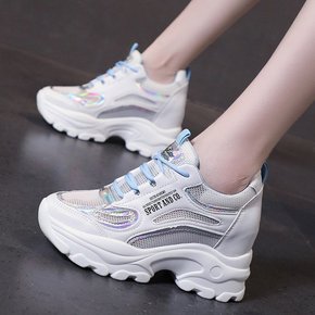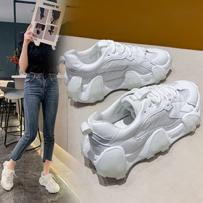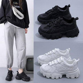 老爹鞋女2022春季新款网红厚底小白鞋透气松糕增高...