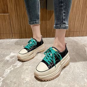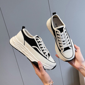 厚底休闲女鞋小白鞋圆头系带低帮板鞋2022春季新款...