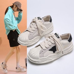 明星同款贝壳头溶解鞋小众设计感百搭厚底帆布鞋女新款...