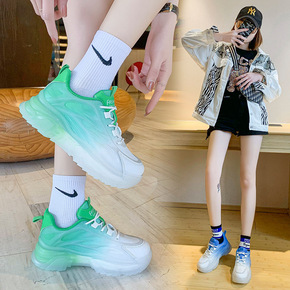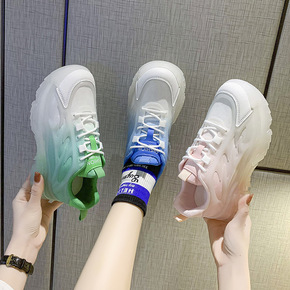 透明果冻底老爹鞋女2022春季学生运动鞋鞋厚底渐变...