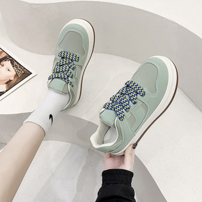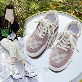 小白鞋2022新款棋盘格低帮帆布鞋厚底平底板鞋饼干...