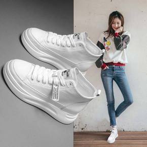 小白鞋女秋季新款女鞋学生春秋百搭爆款高帮厚底运动休...