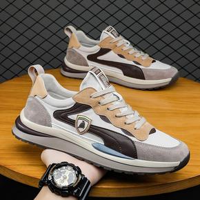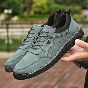 男鞋皮面防水运动鞋男士防臭耐磨休闲学生跑步鞋大码软...