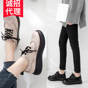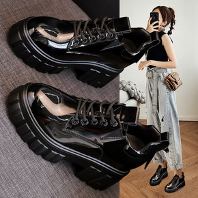 英伦风小皮鞋女黑色厚底休闲系带漆皮内增高女鞋秋季百...