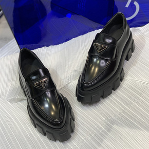 厚底松糕鞋女英伦复古风方头黑色粗跟皮鞋欧美铆钉乐福...