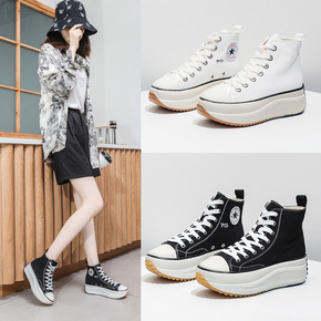 麦昆帆布鞋女2021春夏增高厚底小白鞋情侣松糕老爹...