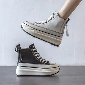 厚底真皮高帮鞋女ins潮鞋2021新款百搭增高小白...