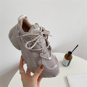 小众厚底老爹鞋女ins潮百搭2021春秋复古拼色运...