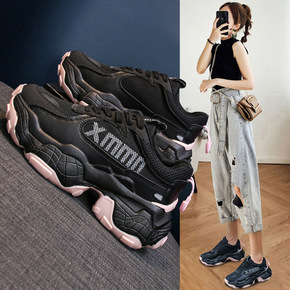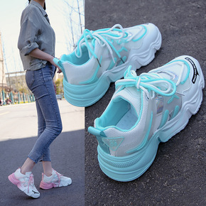 爆款秋季新款休闲老爹鞋女厚底网面透气运动女鞋202...