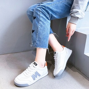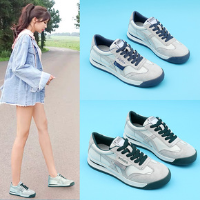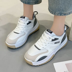 真皮休闲运动鞋女2021秋季新款百搭低帮系带拼色厚...