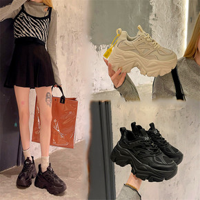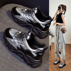 老爹鞋女2021秋季新款百搭包底拼色女鞋厚底休闲网...