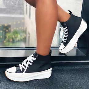 肖战同款鞋高帮帆布鞋女秋新款厚底运动鞋松糕休闲板鞋...