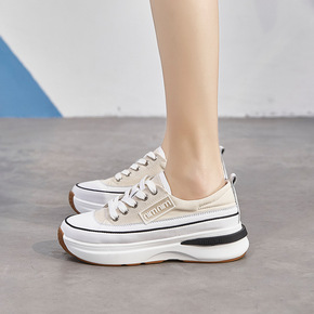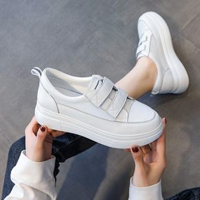 2021休闲圆头白色低帮松紧带纯色粘胶鞋日常松糕厚...