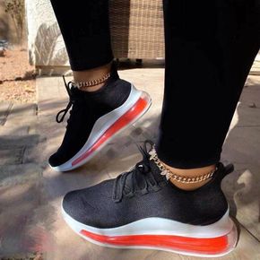 学生休闲鞋女2021秋季女鞋新款休闲跑步鞋透气飞织...