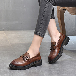 2021春秋款头层牛皮英伦学院风小皮鞋金属扣乐福鞋...
