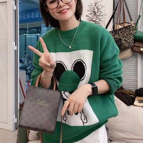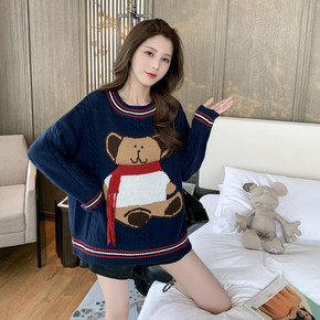 2020新款宽松慵懒风小熊毛衣女中长款韩版秋冬显瘦...