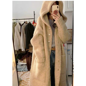 秋冬新款日系慵懒温柔风高级感复古长款宽松厚毛衣外套...