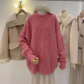 2022秋冬季库存女装大码宽松套头针织厚毛衣外贸地...
