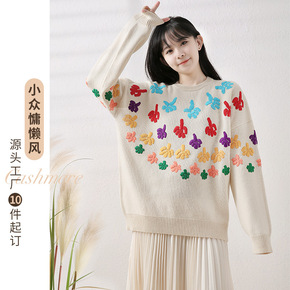 定制手绣套头毛衣女装宽松慵懒风2021新款冬季设计...