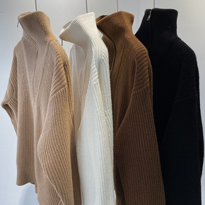 美式复古Y*K拉链羊毛针织衫高领套头外穿百搭宽松厚...