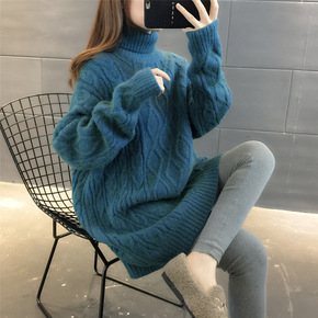 海马毛毛衣2021年秋冬新款加厚宽松慵懒过膝中长款...