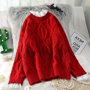 蕾丝假两件毛衣女秋冬外穿2020新款潮宽松慵懒风加...