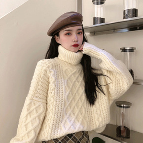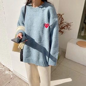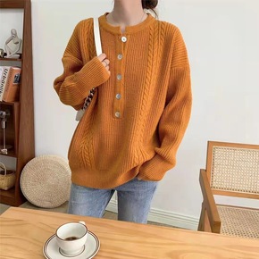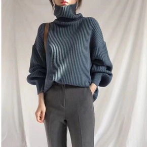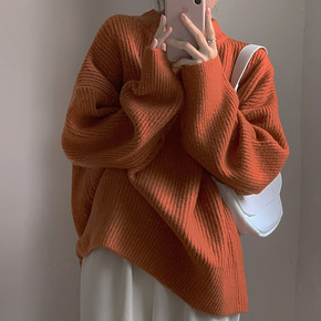 2021秋冬慵懒风加厚软糯圆领毛衣宽松长袖打底针织...