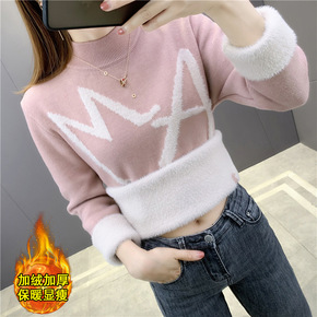 2021秋冬韩版新款半高领加绒一体绒套头打底衫针织...