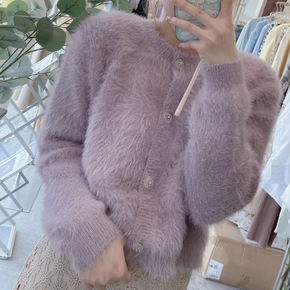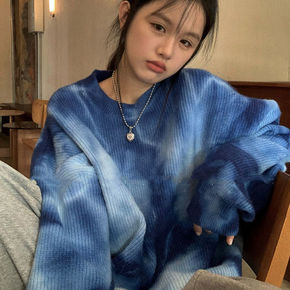 2021春季新款韩版宽松针织衫慵懒风外穿套头圆领紫...