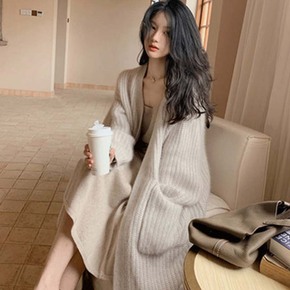 开衫毛衣女宽松慵懒风中长款外搭2020年秋冬新款粗...