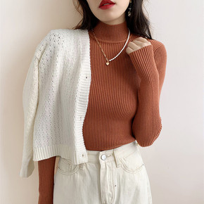 半高领毛衣女打底衫2021春秋冬季新款紧身内搭上衣...