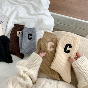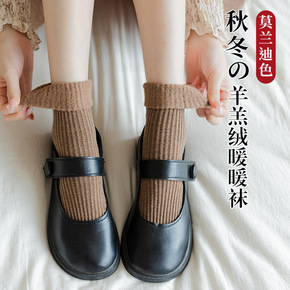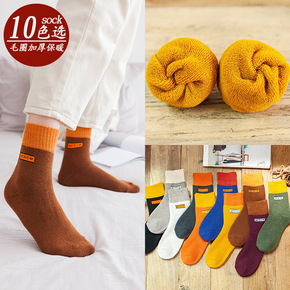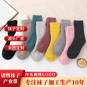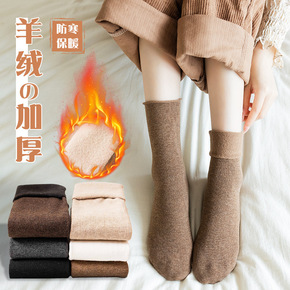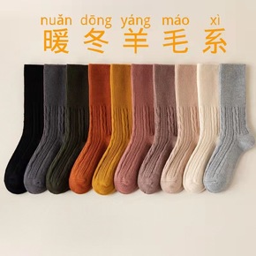 现货女袜子批发时尚休闲纯色情侣中筒袜羊绒袜保暖冬季...