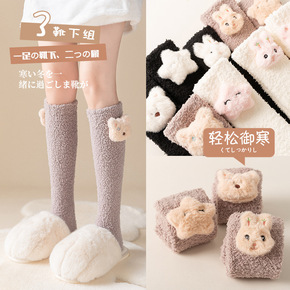 袜子女中筒卡通珊瑚绒地板袜不掉毛加绒加厚冬季保暖居...
