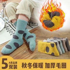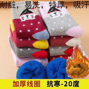 值【特厚】秋冬加厚加绒毛巾保暖儿童袜子纯棉大童男童...
