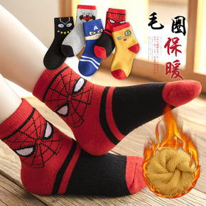 儿童袜子冬季毛圈袜 男童中大童卡通加绒加厚宝宝保暖...