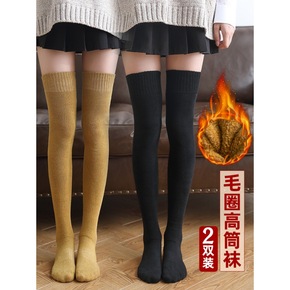 长袜子女羊毛袜中筒袜加绒加厚款保暖秋冬款长筒羊绒高...