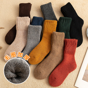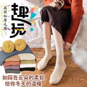 冬季厚袜子女秋冬加绒毛圈加厚日系雪地中筒袜韩版羊毛...