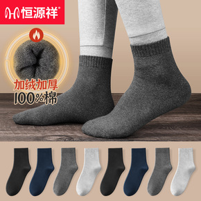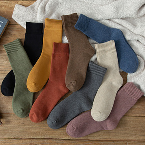 秋冬厚袜子男中筒袜纯色加厚保暖毛巾袜男士百搭长筒袜...