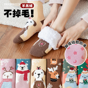 羊羔绒袜子女加绒加厚保暖地板袜可爱圣诞秋冬家居睡眠...
