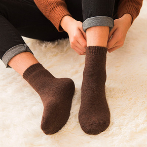 秋冬保暖毛圈加厚袜子女中筒袜日系纯色加绒毛巾长袜纯...