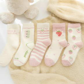 卡通毛绒袜子女日系可爱立体加厚珊瑚绒中筒袜冬季居家...