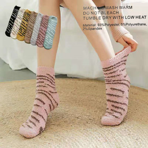 跨境亚马逊珊瑚絨袜子女士冬加厚棉袜豹纹猫爪保暖居地...