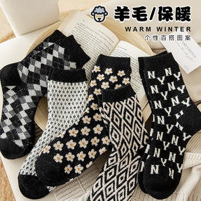 面料名称:羊毛 双针袜:否:单针袜 无骨缝制:否:机器缝头 功能:保暖 风格:日系 图案:格...