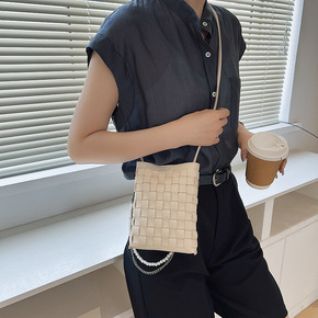 韩版包包小众设计单肩包2022新款编织小方包时尚斜...