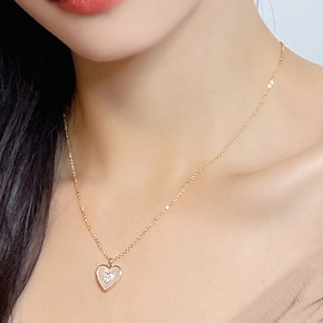 欧美小清新优雅贝壳水钻金属爱心项链 高级感轻奢风小...