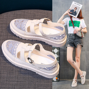 渔夫凉鞋女2022夏季平底蕾丝包头罗马凉鞋软妹原宿...