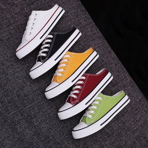 春夏半托小白鞋女韩版学生原宿后跟一脚蹬懒人鞋百搭帆...
